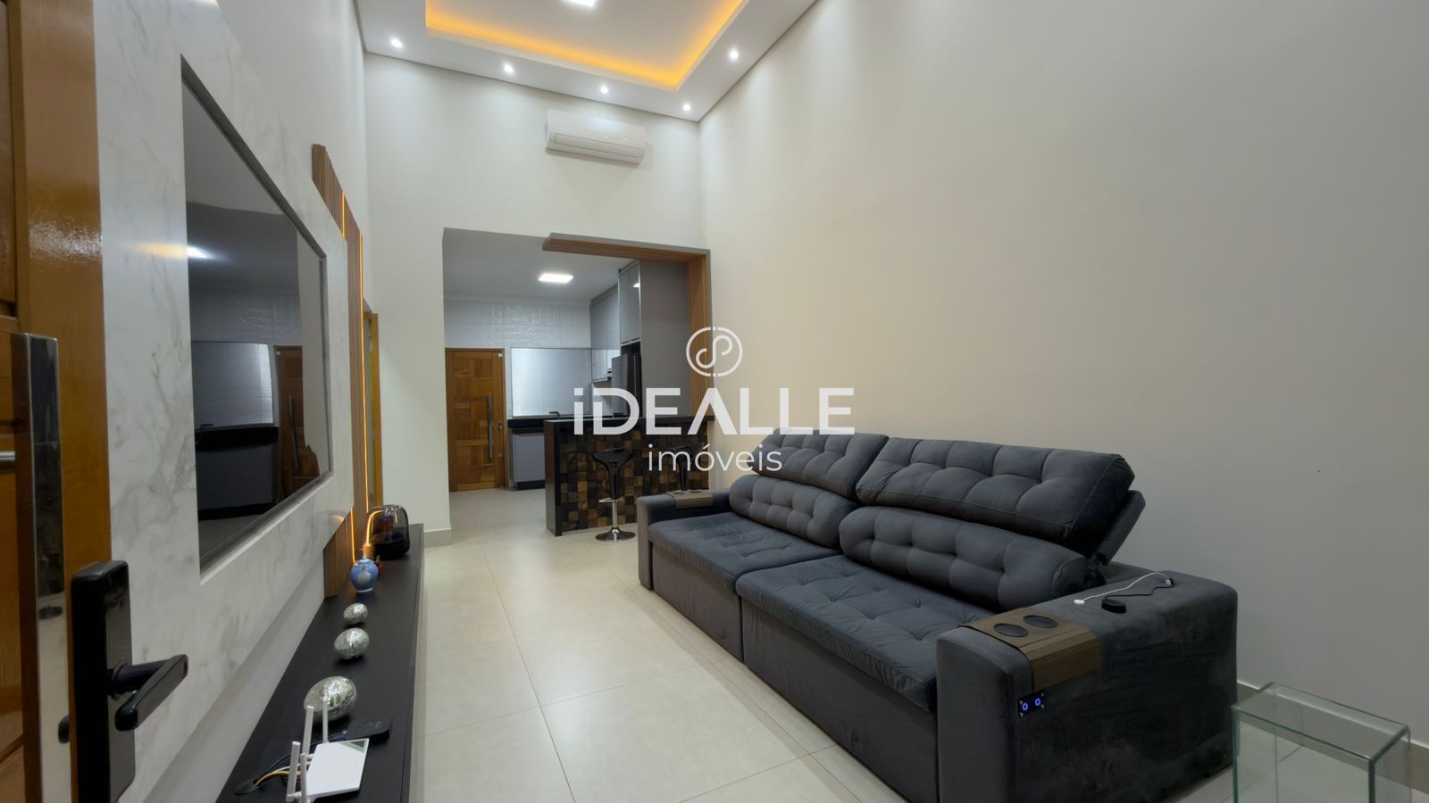 Imovel Automatizado com sistema alexa integrado, 2 dormitórios sendo 1 suite, sala e cozinha em ambientes integrados, sendo a sala com detalhes em LED e pé direito alto.